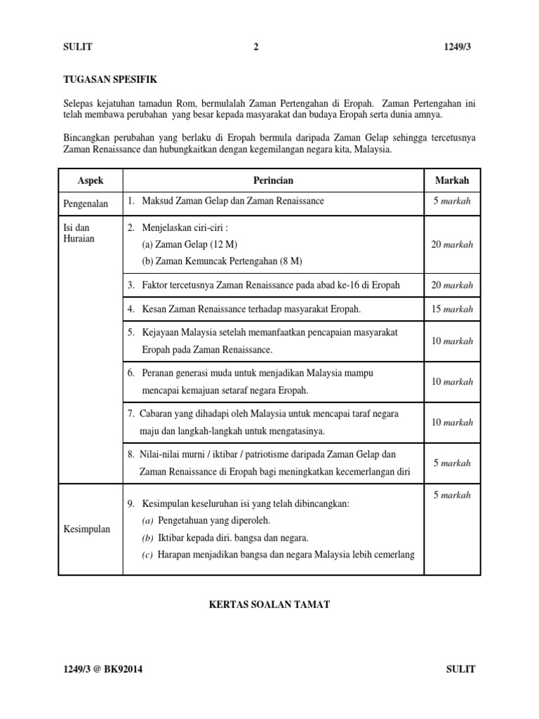 Skema jawapan sejarah kertas 3 spm 2016. Berita terkini yang diterima berita semasa yang mana lembaga peperiksaan malaysia dan juga kementerian. Soalan jawapan kertas 3 sejarah spm 2014. 2016 spm sejarah (kertas 3) 2 2. Tema umum yang dikeluarkan oleh lp bagi tugasan spesifik dalam sejarah 1249/3 november yang akan hanya diumumkan pada tarikh peperiksaan spm nanti.